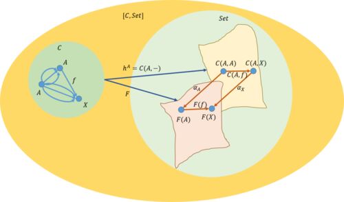 6.6 集合値関手を積として表す 米田の補題は次のようになっていた。局所的に小さな圏\(\mathcal{C}\)と集合の圏\(\mathbf{Set}\)、これらによって作られる関手圏\([\mathcal{C},\mathbf{Set}]\)を考える。任意の対象\(A \in \mathcal{C}\)と任意の関手\(F…